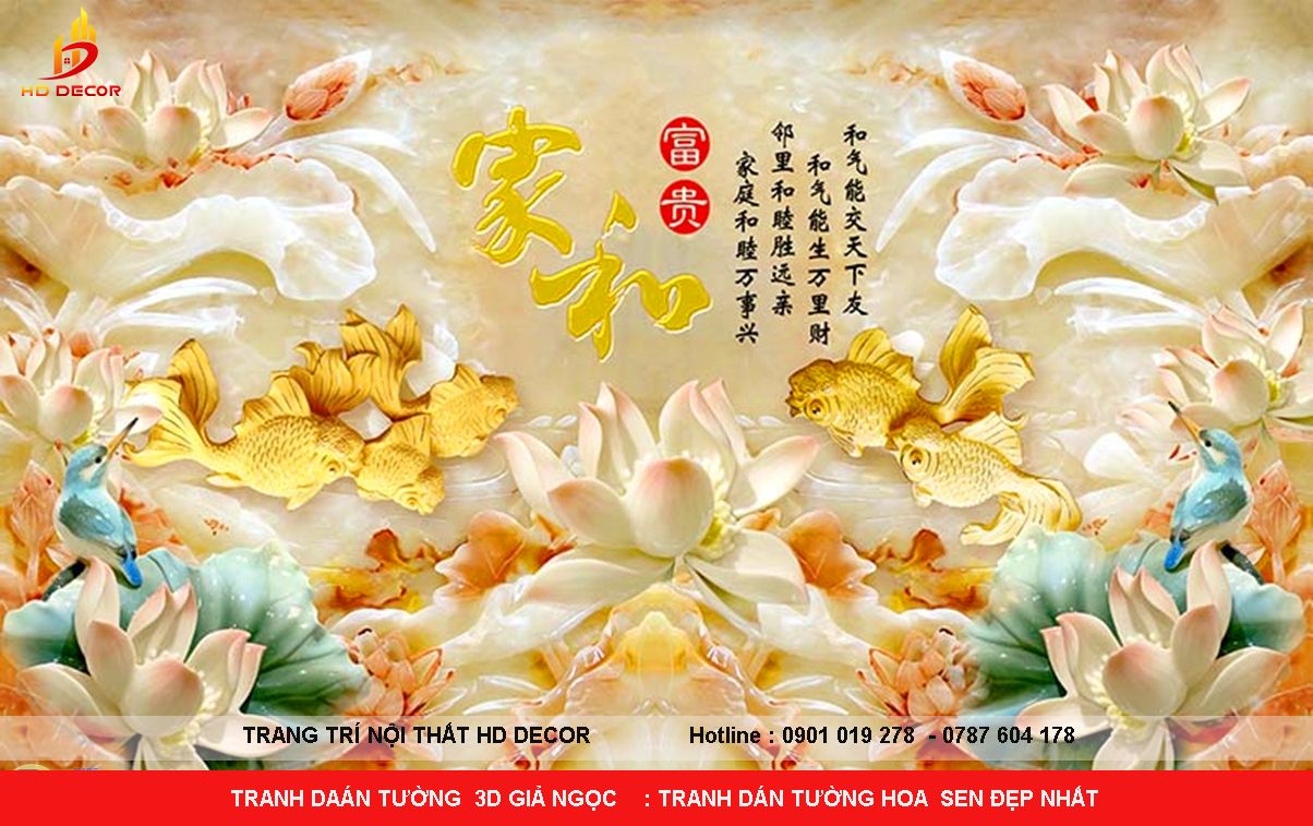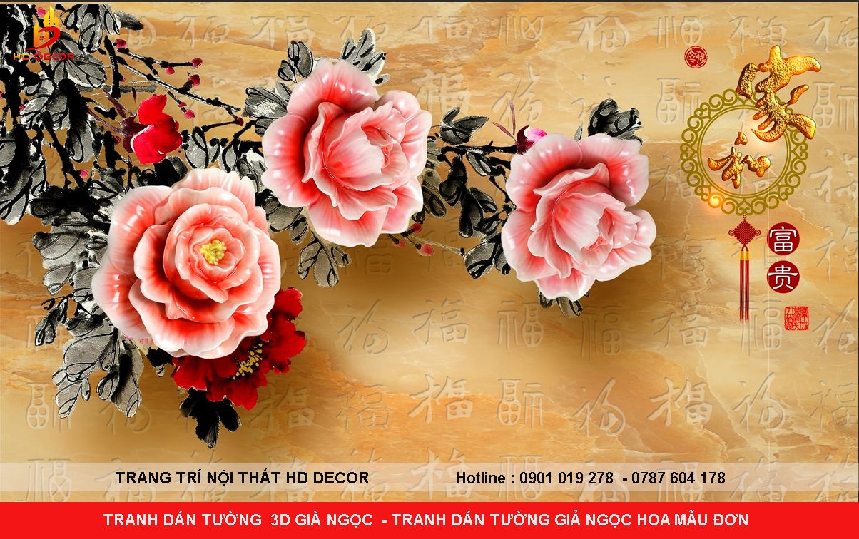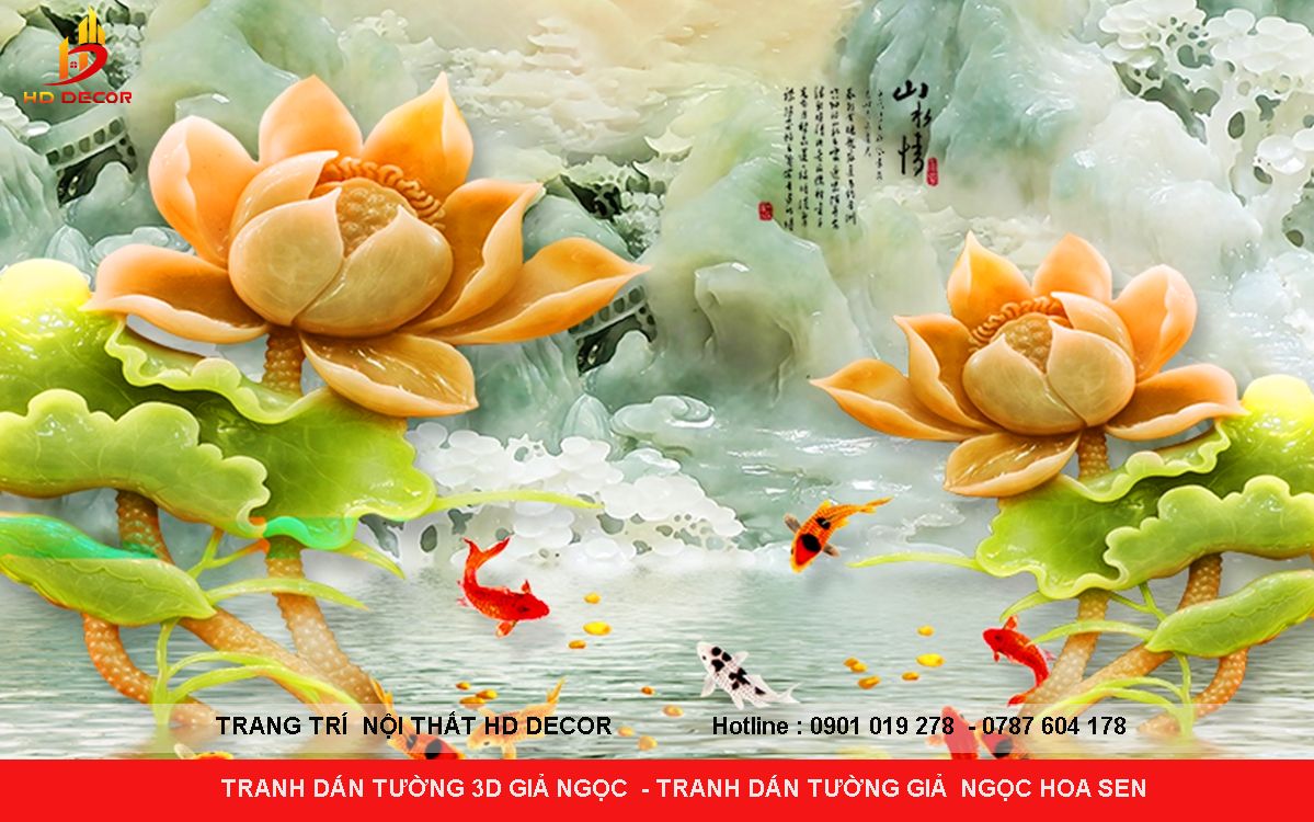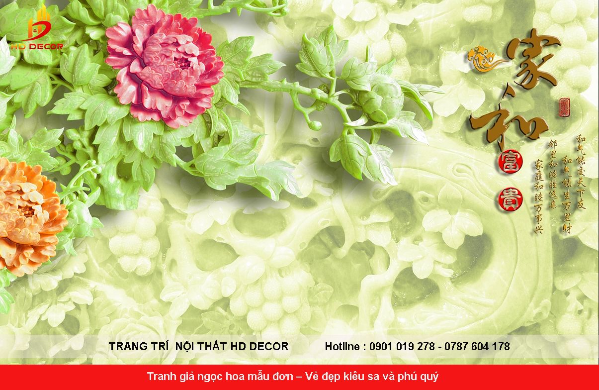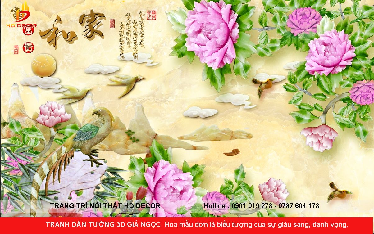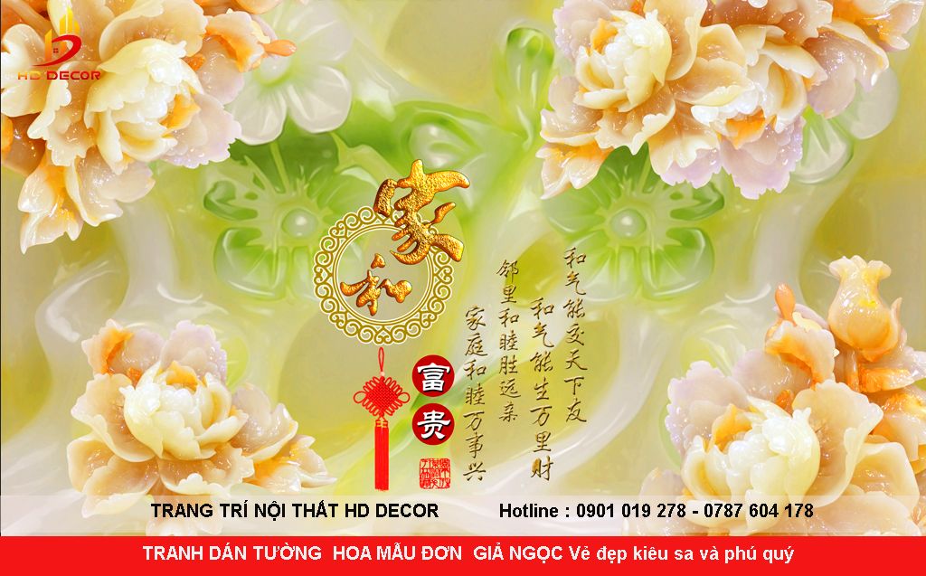 Tranh dán tường giả ngọc là dòng tranh in 3D hoặc UV trên chất liệu PVC cao cấp, được thiết kế mô phỏng vẻ đẹp long lanh, trong suốt của ngọc quý. Các họa tiết thường mang tính nghệ thuật cao, từ hoa lá, chim muông, cá chép, sen đá… cho đến các biểu tượng phong thủy như hoa mẫu đơn, cây kim tiền, rồng phượng.