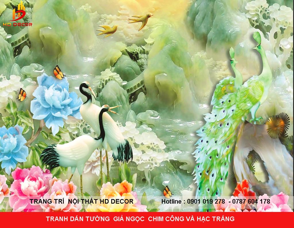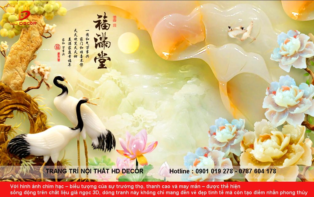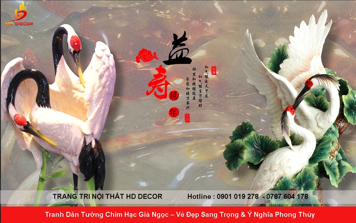 Tranh dán tường chim hạc giả ngọc là sự kết hợp hài hòa giữa nghệ thuật hiện đại và giá trị văn hóa truyền thống. Với hình ảnh chim hạc – biểu tượng của sự trường thọ, thanh cao và may mắn – được thể hiện sống động trên chất liệu giả ngọc 3D, dòng tranh này không chỉ mang đến vẻ đẹp tinh tế mà còn tạo điểm nhấn phong thủy cho không gian sống.
