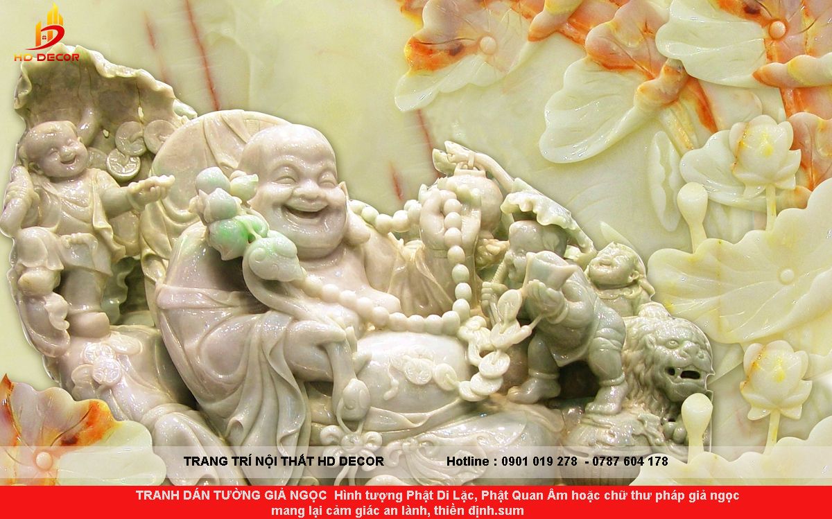 Hình tượng Phật Di Lặc, Phật Quan Âm hoặc chữ thư pháp giả ngọc mang lại cảm giác an lành, thiền định.