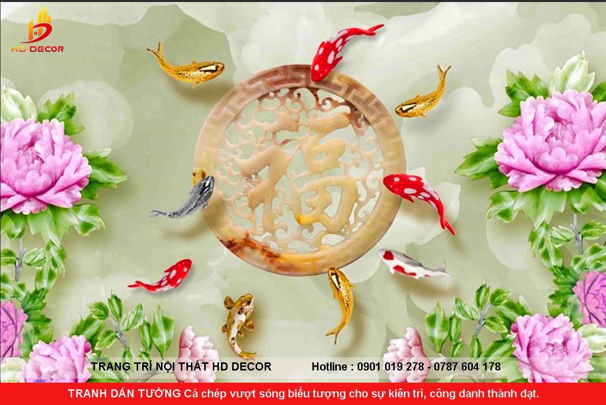 Hình ảnh cá chép vượt sóng biểu tượng cho sự kiên trì, công danh thành đạt.