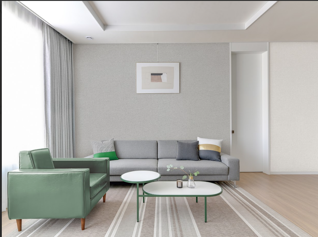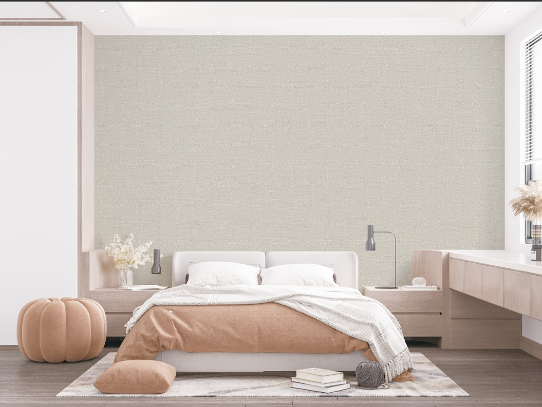 Chọn giấy dán tường có họa tiết đơn giản, đường nét hình học, hoặc trơn một màu với bề mặt nhám, bóng nhẹ.