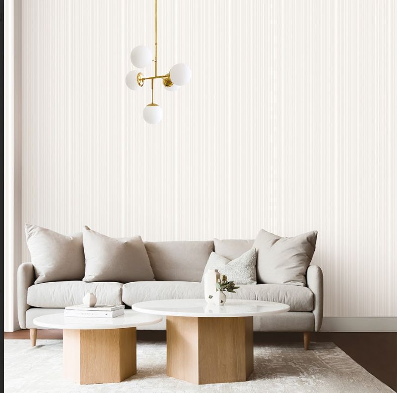 Gợi ý: Giấy dán tường trơn hoặc họa tiết kẻ sọc nhẹ.