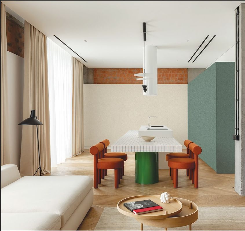 - 6. CÁCH PHỐI MÀU GIẤY DÁN TƯỜNG PHÒNG KHÁCH HIỆN ĐẠI :
