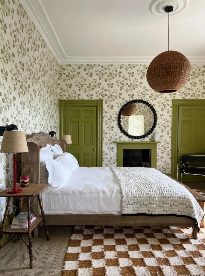 ⚡ Dùng họa tiết hợp lý: Quá nhiều họa tiết sẽ gây rối mắt, hãy kết hợp một mảng tường có họa tiết mạnh với những bức tường còn lại màu trơn.