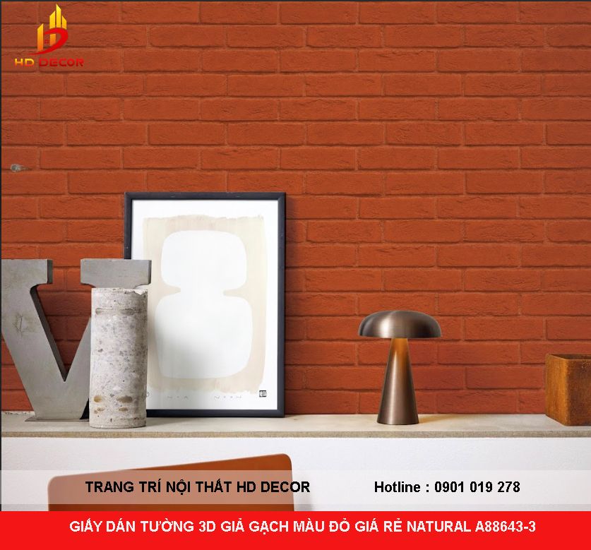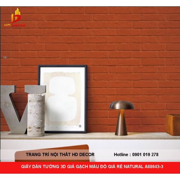 GIẤY DÁN TƯỜNG 3D GIẢ GẠCH MÀU ĐỎ GIÁ RẺ NATURAL A88643-3