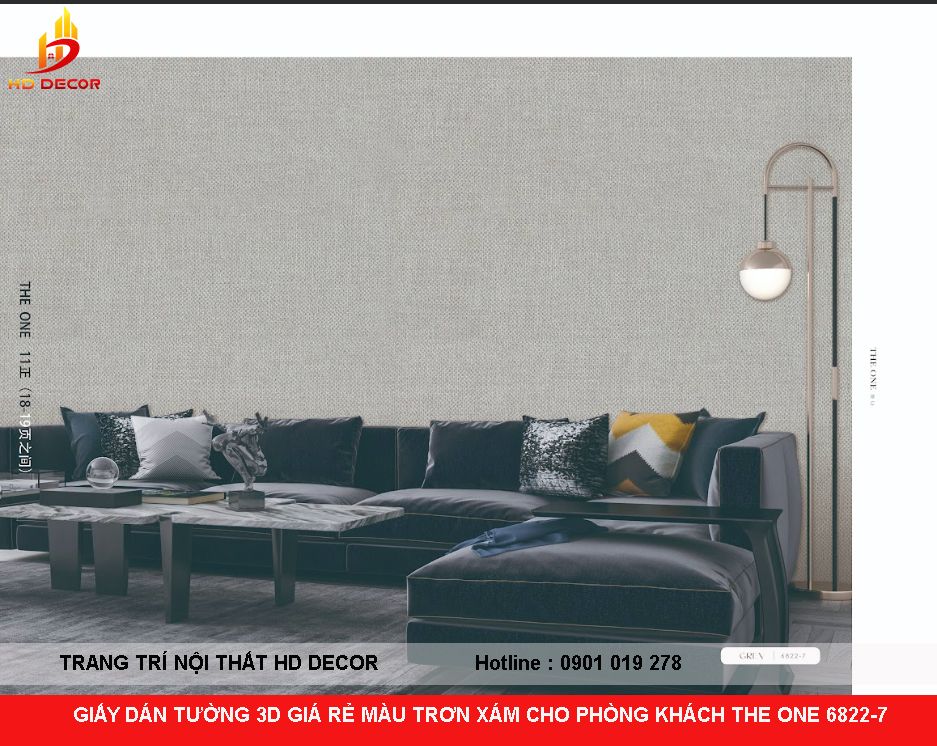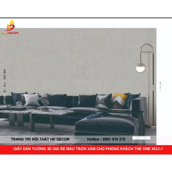 GIẤY DÁN TƯỜNG 3D GIÁ RẺ MÀU TRƠN XÁM CHO PHÒNG KHÁCH THE ONE 6822-7
