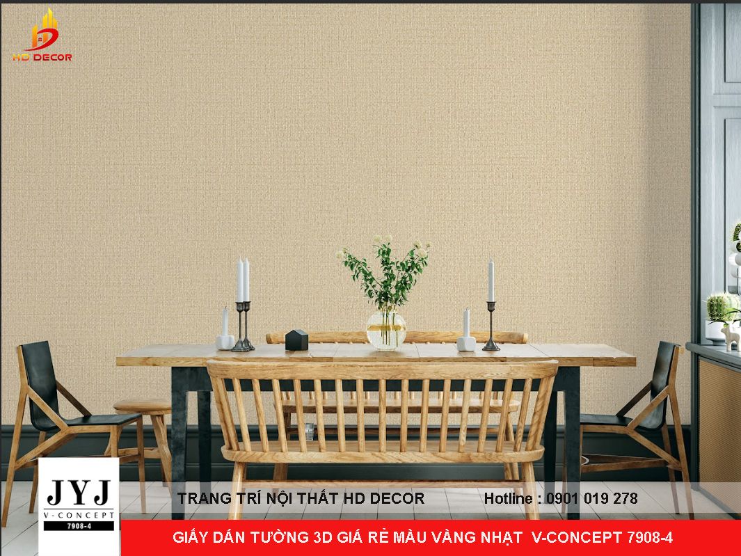 GIẤY DÁN TƯỜNG 3D GIÁ RẺ MÀU VÀNG NHẠT V-CONCEPT 7908-4