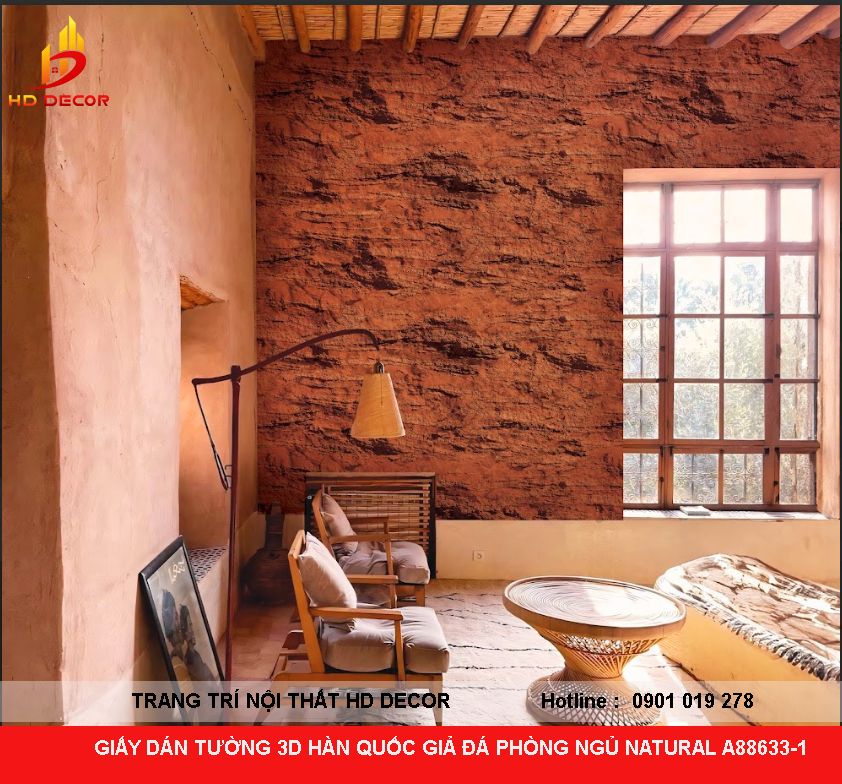 GIẤY DÁN TƯỜNG 3D HÀN QUỐC GIẢ ĐÁ PHÒNG NGỦ NATURAL A88633-1
