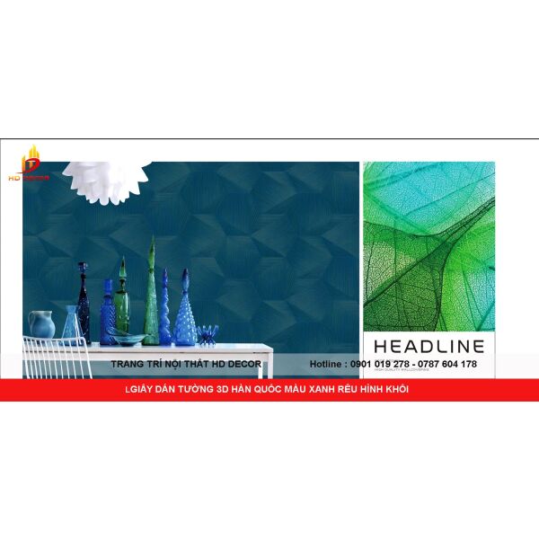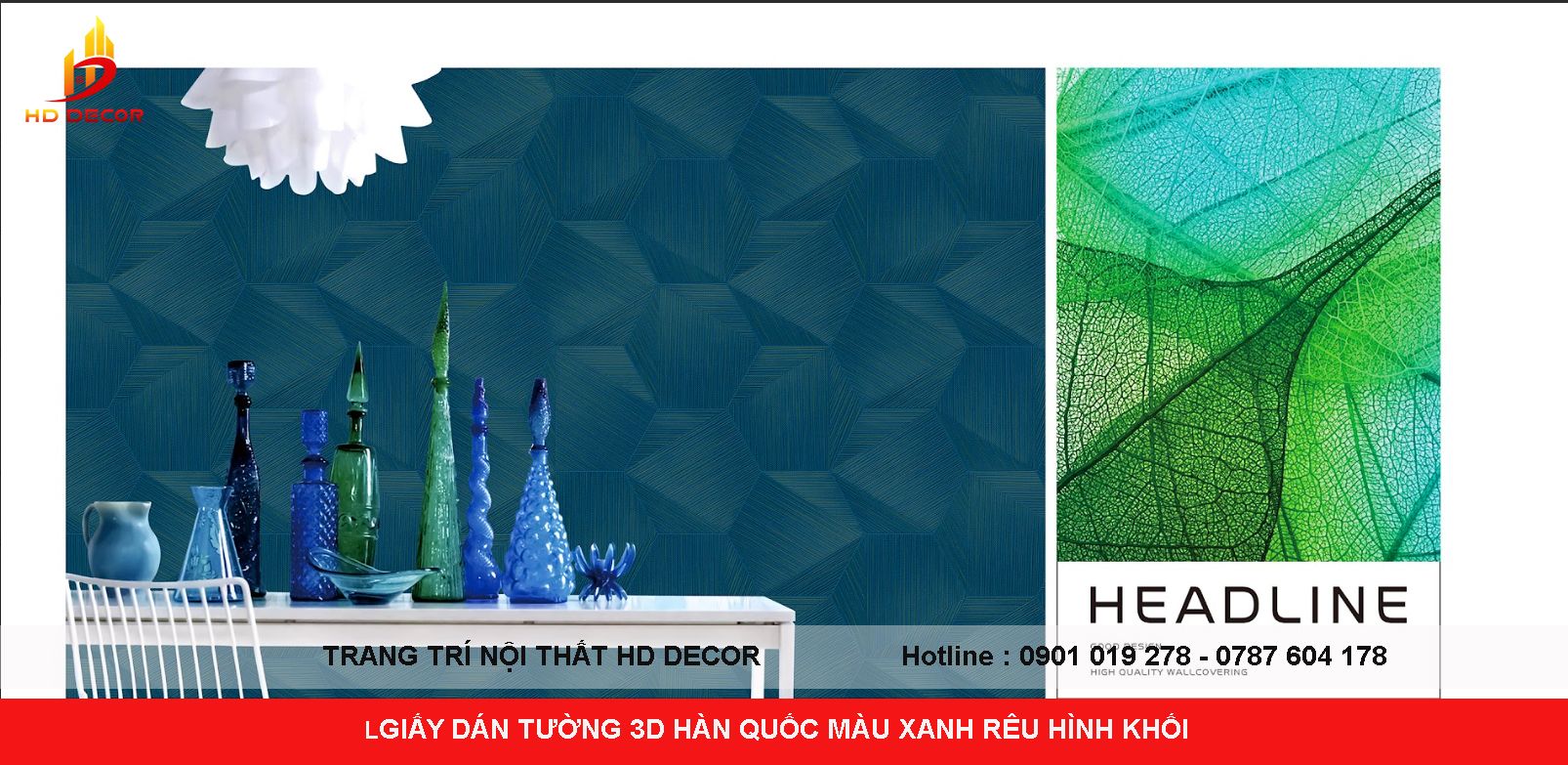 GIẤY DÁN TƯỜNG 3D HÀN QUỐC MÀU XANH RÊU HÌNH KHỐI