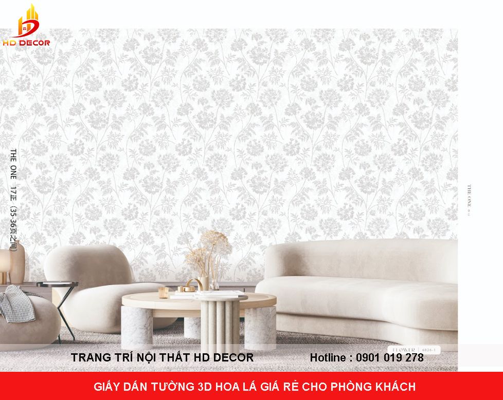 GIẤY DÁN TƯỜNG 3D HOA LÁ GIÁ RẺ CHO PHÒNG KHÁCH THE ONE 6826-1