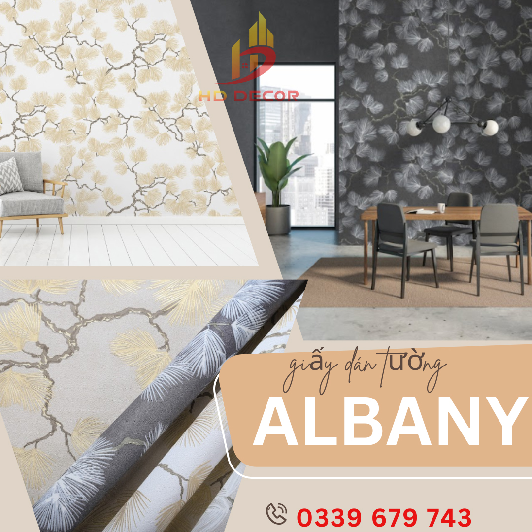 Giấy dán tường Albany: Bộ sưu tập Albany mang nhiều họa tiết thiết kế đa dạng, bắt mắt hơn theo xu hướng đổi mới không gian, được sản xuất tại Hàn Quốc. Chất liệu giấy sử dụng loại giấy PVC thân thiện môi trường, đa dạng các loại thiết kế 3D, vân gỗ, hoa văn sang trọng. Ưu điểm: Độ bền cao tiếp xúc ánh sáng, Sử dụng keo dán, vệ sinh dễ dàng bề mặt.