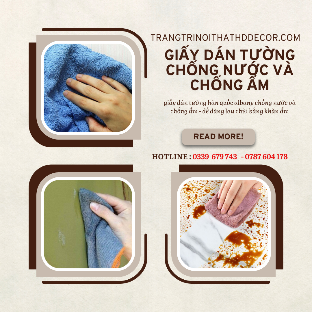 Nhiều loại giấy dán tường Albany Hàn Quốc có khả năng chống nước và chống ẩm. Điều này làm cho chúng phù hợp cho việc sử dụng trong các khu vực có độ ẩm cao như phòng tắm và nhà bếp.