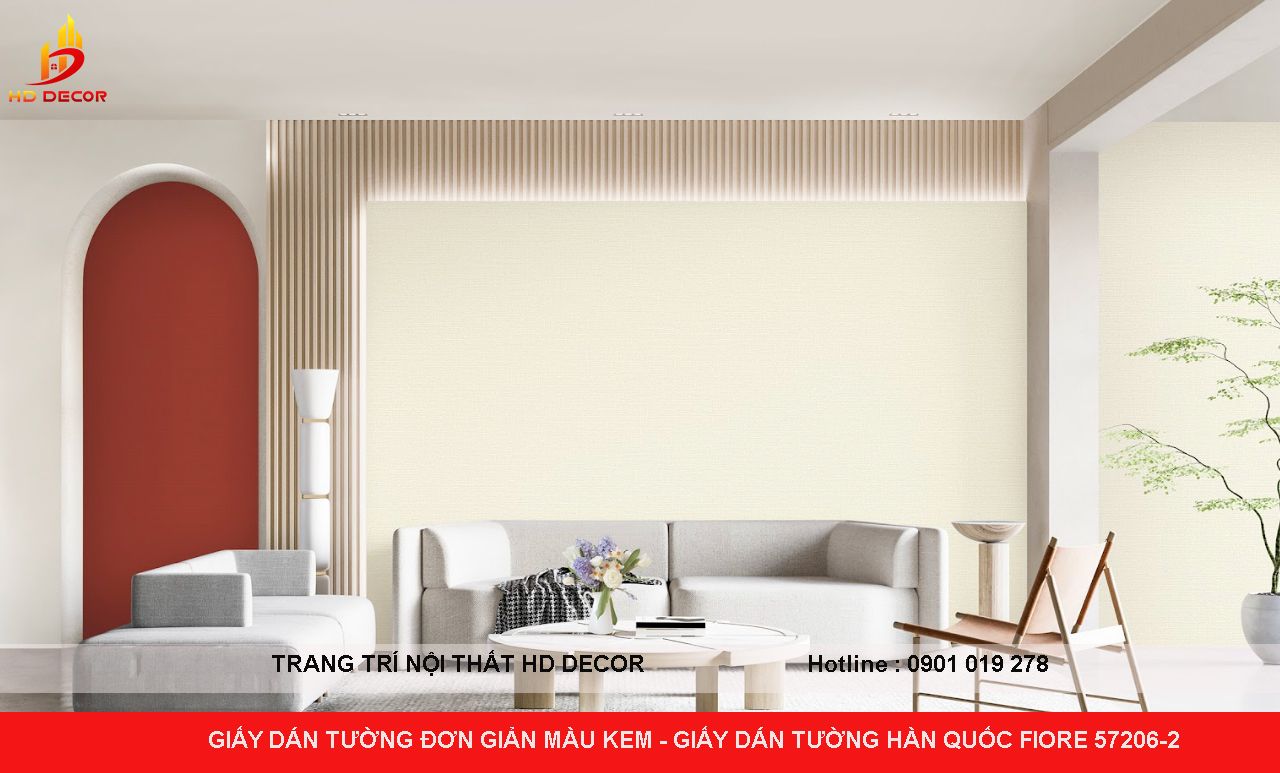 GIẤY DÁN TƯỜNG ĐƠN GIẢN MÀU KEM - GIẤY DÁN TƯỜNG HÀN QUỐC FIORE 57206-2