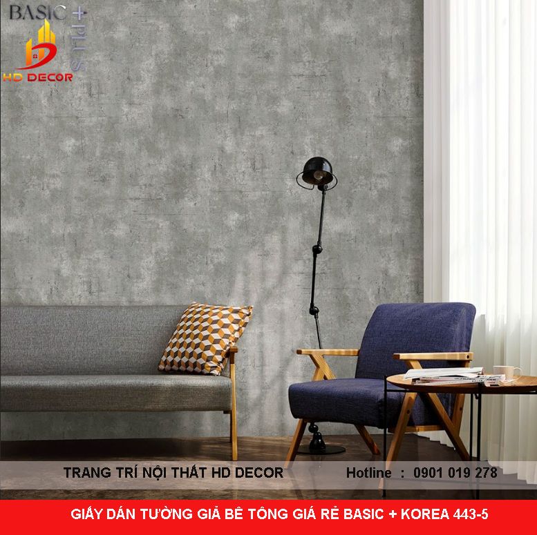 GIẤY DÁN TƯỜNG GIẢ BÊ TÔNG GIÁ RẺ BASIC + KOREA 443-5
