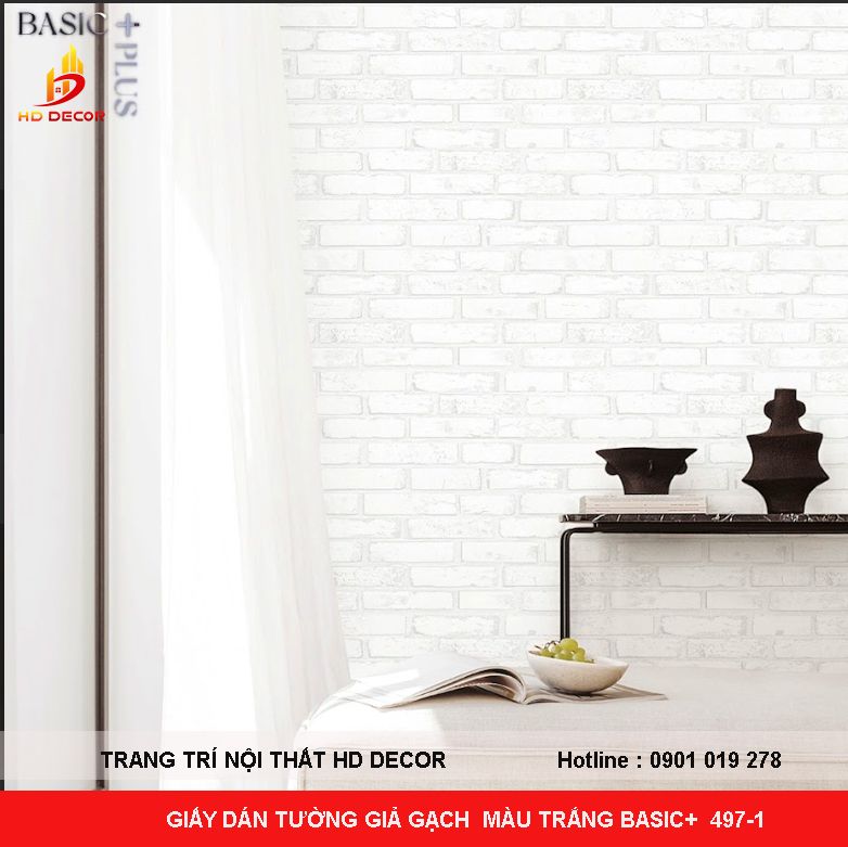 GIẤY DÁN TƯỜNG GIẢ GẠCH MÀU TRẮNG BASIC 497-1
