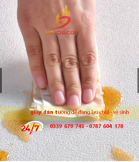 - Ngoài ra nếu chẳng may bị nước, cafe hay chất bẩn vấy vào người dùng chỉ cần sử dụng một chiếc khăn sạch lau qua bề mặt giấy dán tường là sản phẩm lại sạch như ban đầu. Với lớp phủ vily bạn sẽ không phải lo nếu không gian căn phòng của bạn bị ẩm mốc ảnh hưởng tới chất lượng giấy bởi lớp phủ này có tính chất không thấm nước, nước sẽ tự động khô theo thời gian mà bề mặt giấy hoàn toàn không bị ảnh hưởng.
