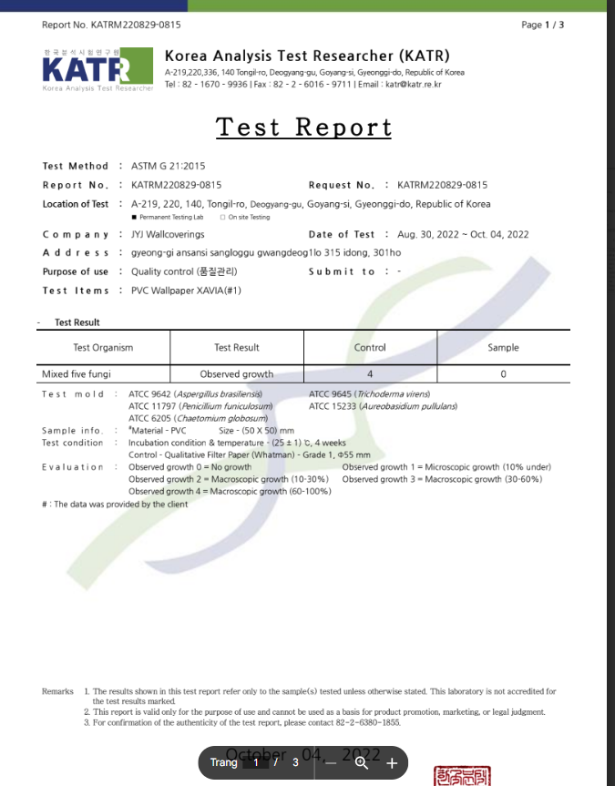 GIẤY CHỨNG NHẬN GIẤY DÁN TƯỜNG HÀN QUỐC CHÍNH HÃNG :