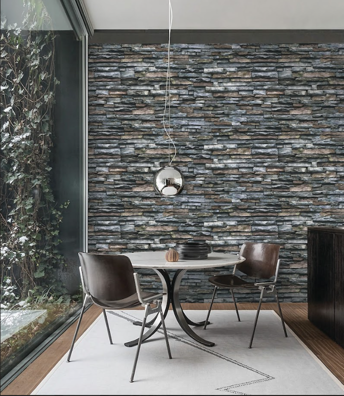Giấy dán tường giả đá được sản xuất với công nghệ in hiện đại, giúp tạo ra các họa tiết vân đá chân thật, sắc nét. Những đường vân tinh xảo, màu sắc đa dạng và tự nhiên mang lại cảm giác như đang nhìn vào bề mặt đá tự nhiên, khó phân biệt được bằng mắt thường. Với giấy dán tường giả đá, bạn có thể tạo nên không gian sang trọng mà không cần đến vật liệu nặng và đắt đỏ.