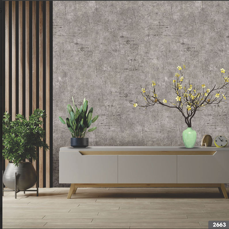 Giấy dán tường xi măng được sử dụng rộng rãi trong cách công trình tranh trí nội thất. Mẫu giấy giả bê tông thể hiện phong cách đơn giản sang trọng. Giấy dán tường giả bê tông xi măng rất phù hợp trang trí cho văn phòng, phòng khách, không gian hiện đại.