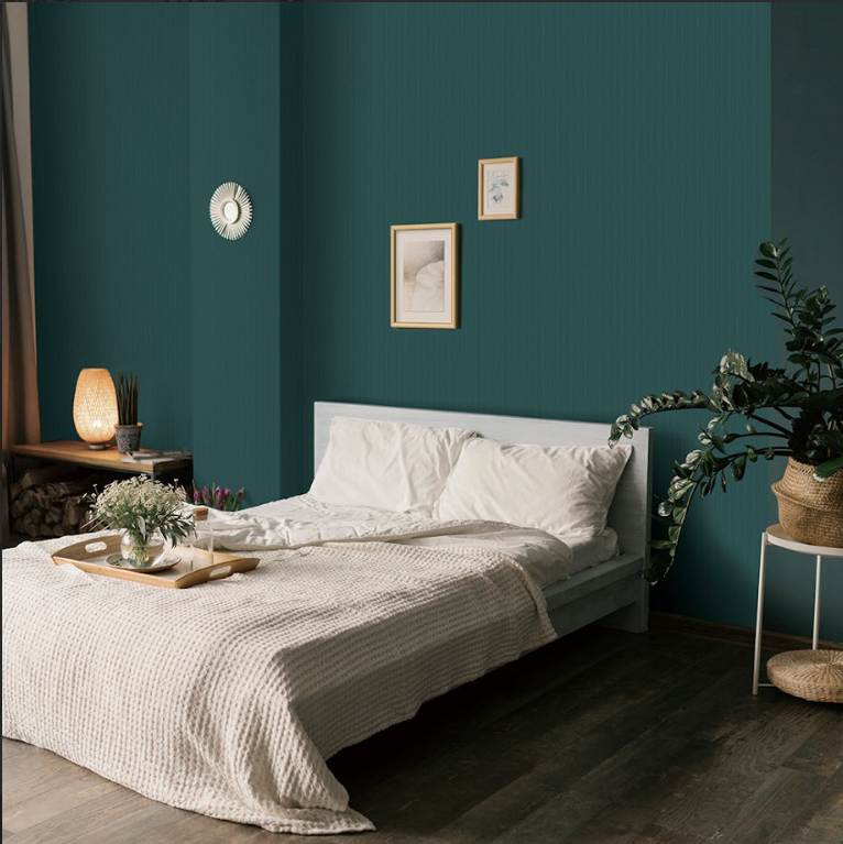 Xu hướng: Các tông màu đậm như xanh navy, đen, đỏ đô, xanh rêu được sử dụng để tạo điểm nhấn hoặc làm nổi bật một mảng tường chính.