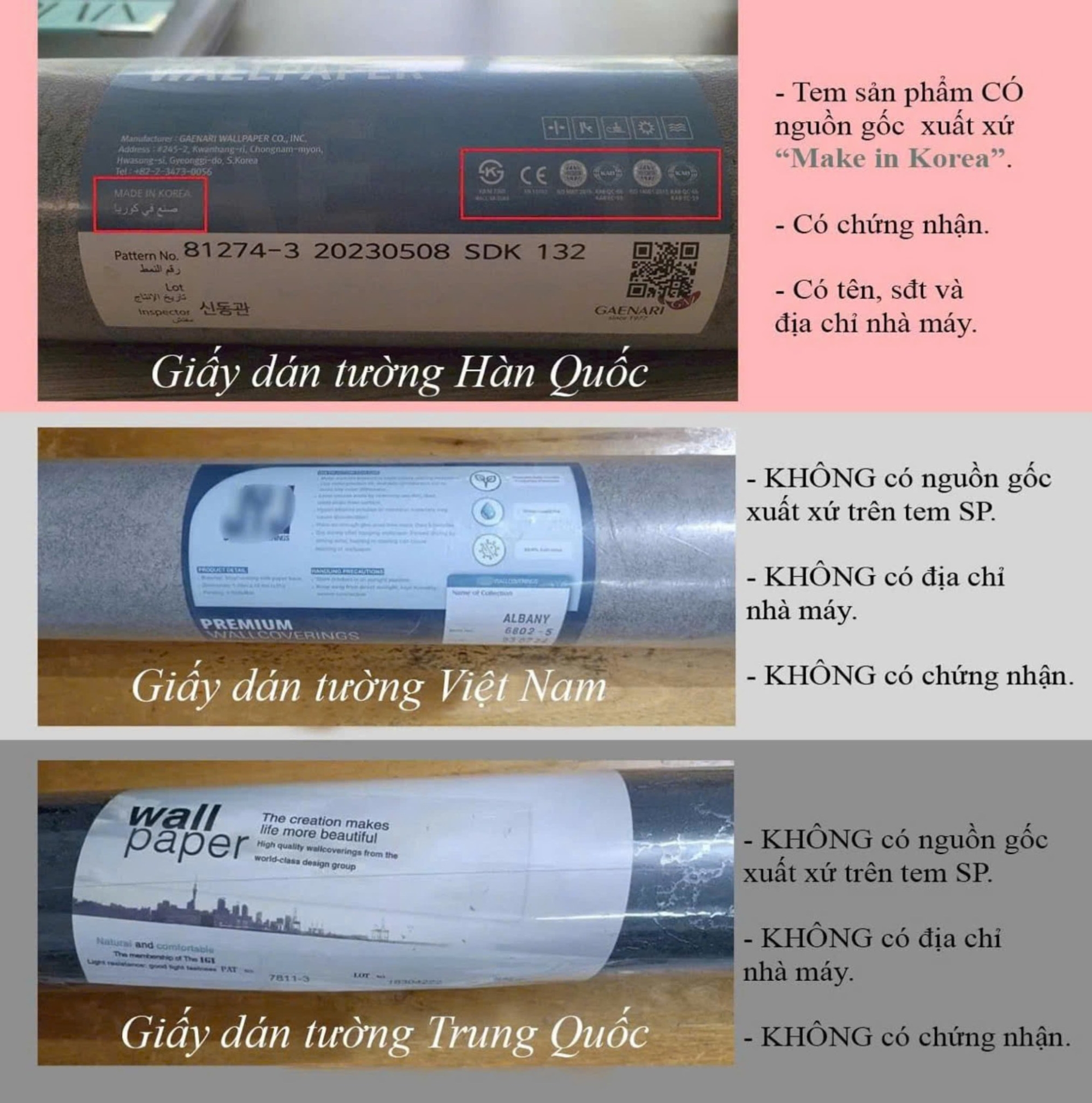 Kiểm tra nguồn gốc xuất xứ giấy dán tường Hàn Quốc :