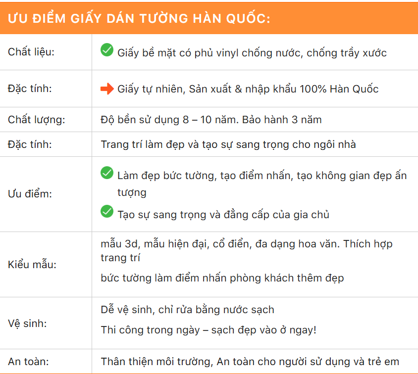 ƯU ĐIỂM CỦA GIẤY DÁN TƯỜNG HÀN QUỐC :
