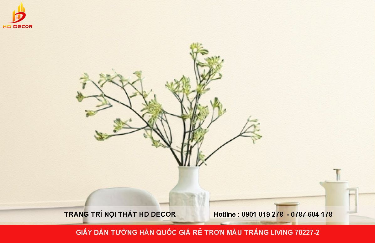 GIẤY DÁN TƯỜNG HÀN QUỐC GIÁ RẺ TRƠN MÀU TRẮNG LIVING 70227-2
