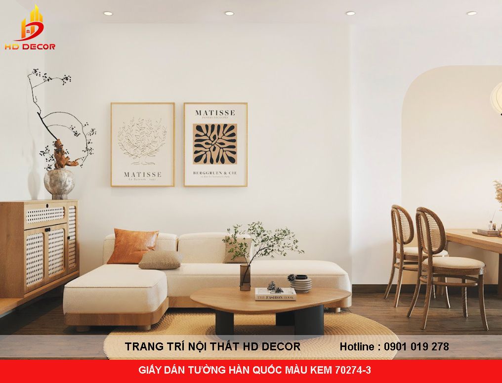 GIẤY DÁN TƯỜNG HÀN QUỐC MÀU KEM 70274-3