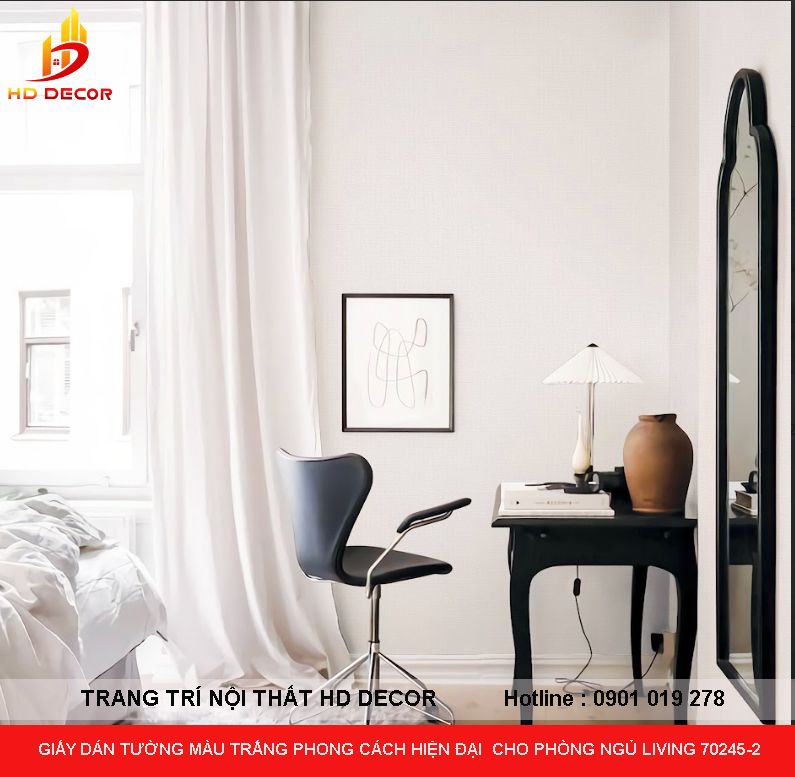 GIẤY DÁN TƯỜNG MÀU TRẮNG PHONG CÁCH HIỆN ĐẠI CHO PHÒNG NGỦ LIVING 70245-2
