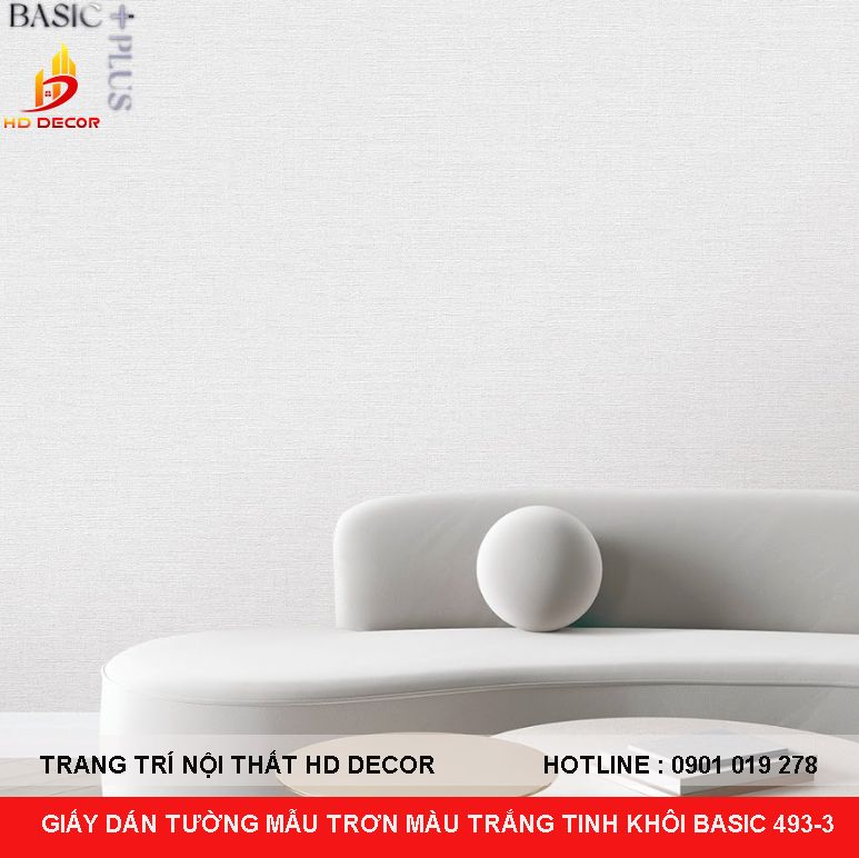 GIẤY DÁN TƯỜNG MẪU TRƠN MÀU TRẮNG TINH KHÔI BASIC 493-3