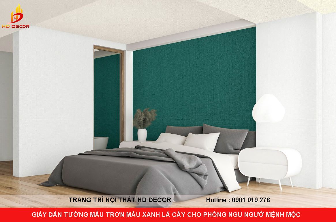 GIẤY DÁN TƯỜNG MẪU TRƠN MÀU XANH LÁ CÂY CHO PHÒNG NGỦ NGƯỜI MỆNH MỘC