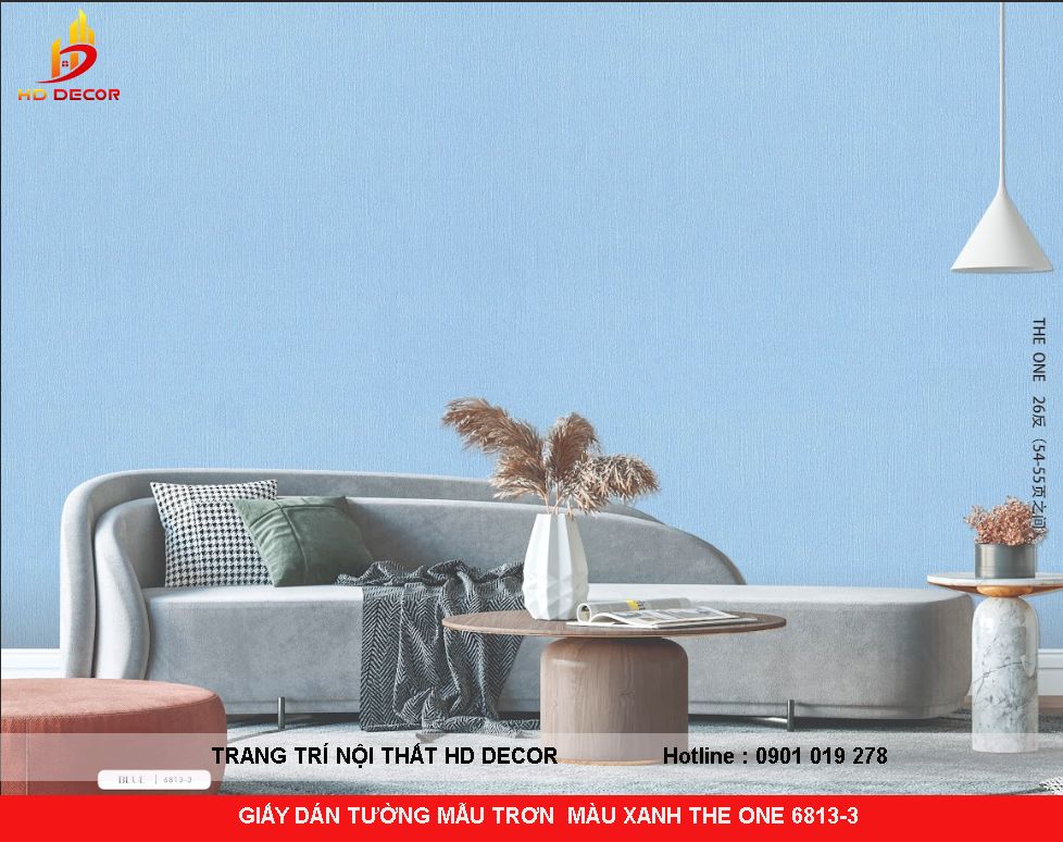 GIẤY DÁN TƯỜNG MẪU TRƠN MÀU XANH THE ONE 6813-3