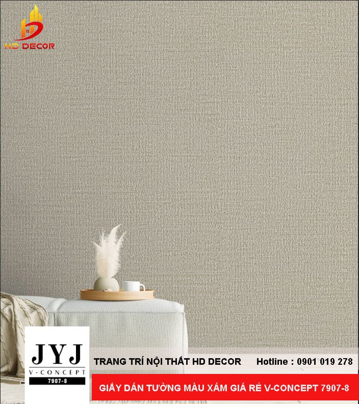 GIẤY DÁN TƯỜNG MÀU XÁM GIÁ RẺ V-CONCEPT 7907-8