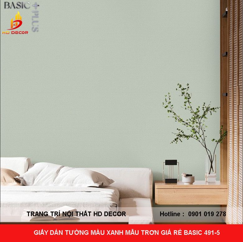 GIẤY DÁN TƯỜNG MÀU XANH MẪU TRƠN GIÁ RẺ BASIC 491-5