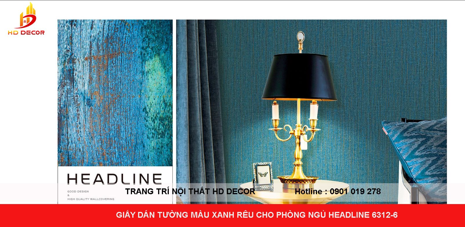 GIẤY DÁN TƯỜNG MÀU XANH RÊU CHO PHÒNG NGỦ HEADLINE 6312-6