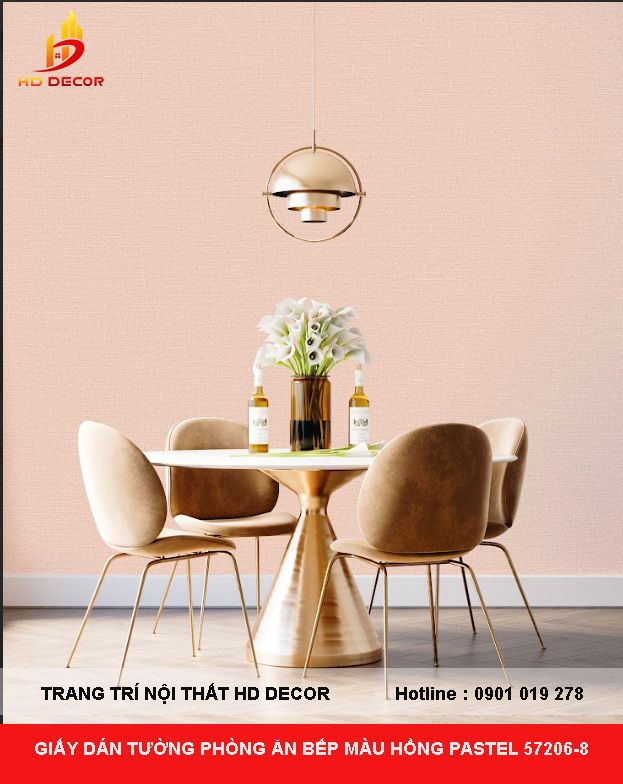 GIẤY DÁN TƯỜNG PHÒNG ĂN BẾP MÀU HỒNG PASTEL 57206-8