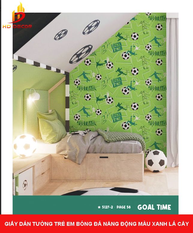 GIẤY DÁN TƯỜNG TRẺ EM BÓNG ĐÁ NĂNG ĐỘNG MÀU XANH LÁ CÂY
