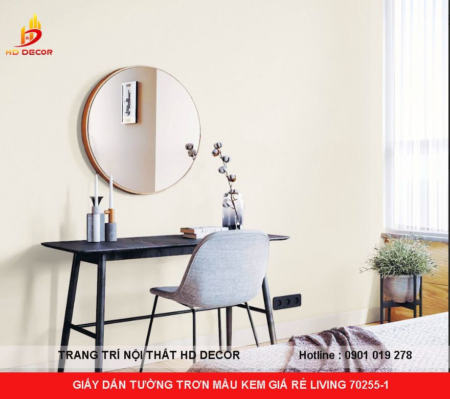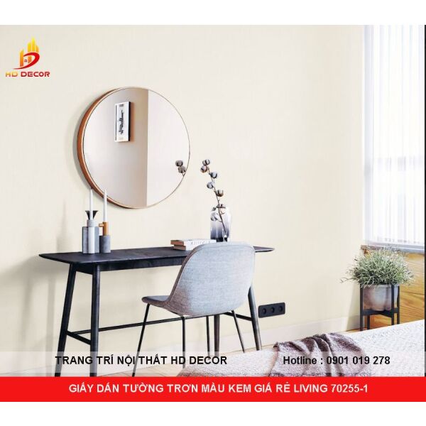 GIẤY DÁN TƯỜNG TRƠN MÀU KEM GIÁ RẺ LIVING 70255-1
