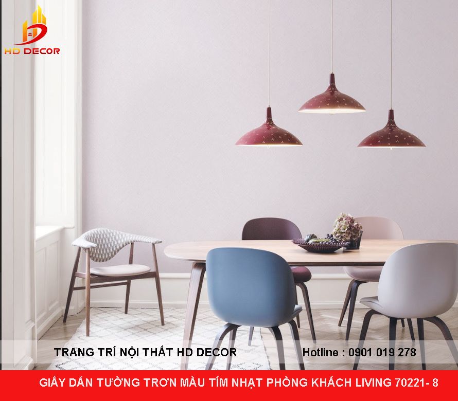 GIẤY DÁN TƯỜNG TRƠN MÀU TÍM NHẠT PHÒNG KHÁCH LIVING 70221-8