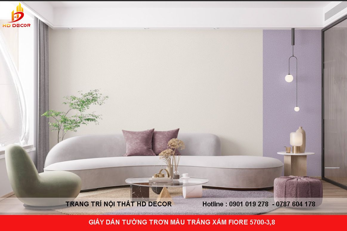 GIẤY DÁN TƯỜNG TRƠN MÀU TRẮNG XÁM FIORE 5700-3,8
