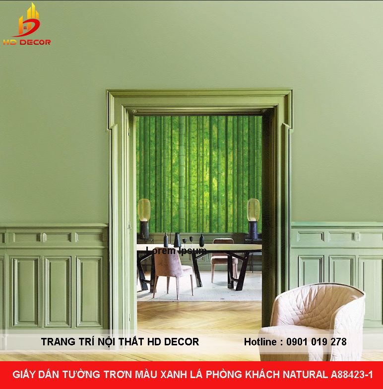 GIẤY DÁN TƯỜNG TRƠN MÀU XANH LÁ PHÒNG KHÁCH NATURAL A88423-1