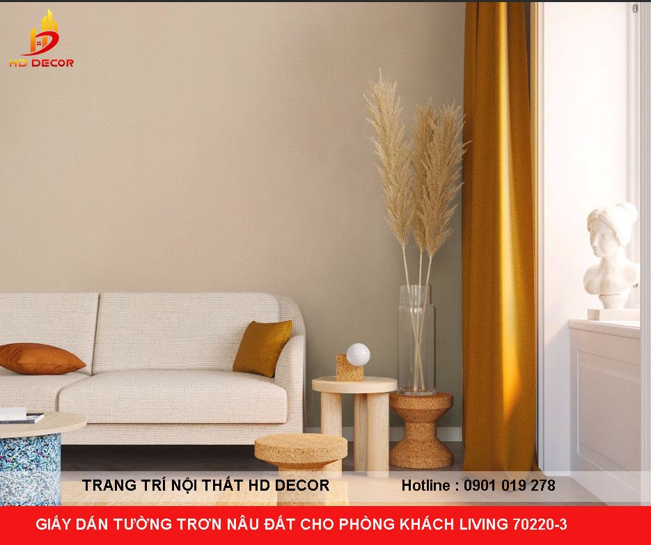 GIẤY DÁN TƯỜNG TRƠN NÂU ĐẤT CHO PHÒNG KHÁCH LIVING 70220-3