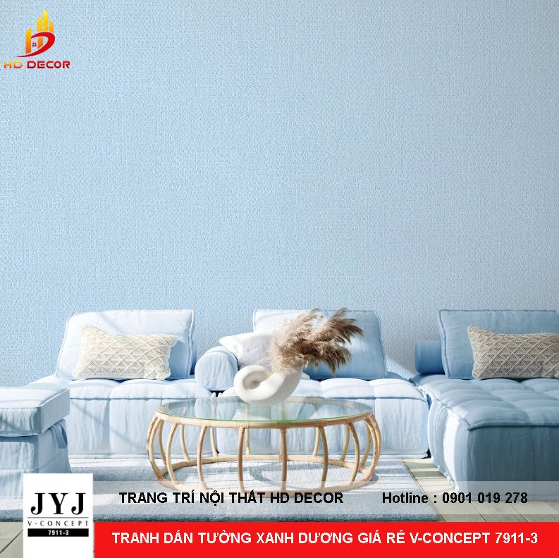 GIẤY DÁN TƯỜNG XANH DƯƠNG GIÁ RẺ PHÒNG KHÁCH V-CONCEPT 7911-3