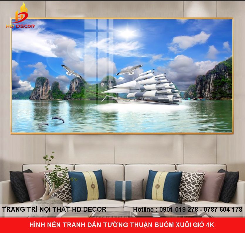 HÌNH NỀN TRANH DÁN TƯỜNG THUẬN BUỒM XUÔI GIÓ 4K