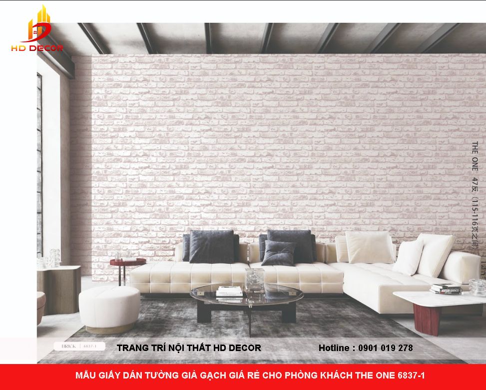 MẪU GIẤY DÁN TƯỜNG GIẢ GẠCH GIÁ RẺ CHO PHÒNG KHÁCH THE ONE 6837-1