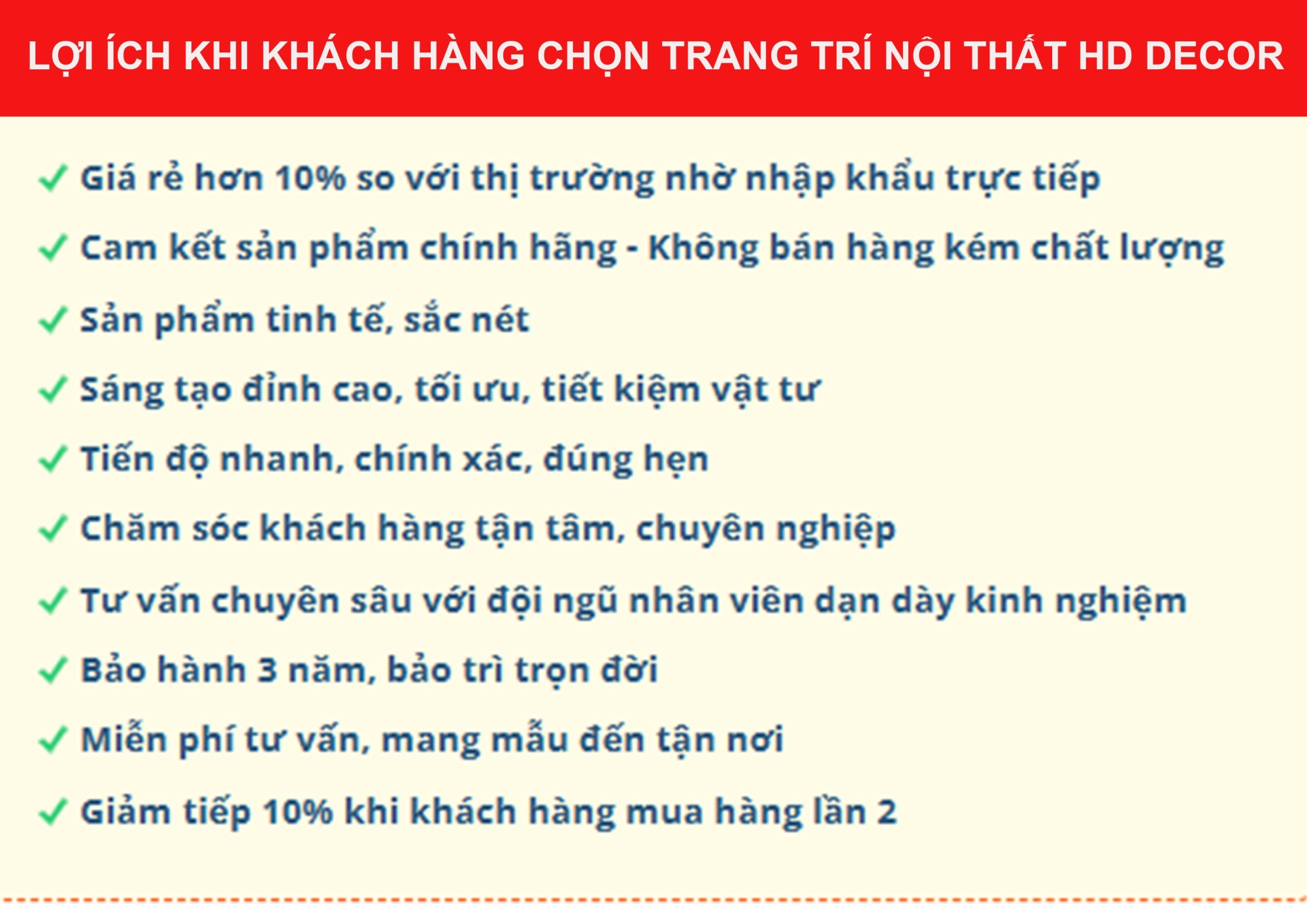 đến với TRANG TRÍ NỘI THẤT HD DECOR khách hàng sẽ nhận được dịch vụ hài lòng . ưng ý . để biết thêm chi tiết thì các bạn truy cập vào website www.trangtrinoithathddecor.com để tham khảo và liên hệ trực tiếp nhé !