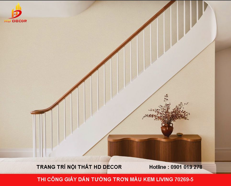 THI CÔNG GIẤY DÁN TƯỜNG TRƠN MÀU KEM LIVING 70269-5