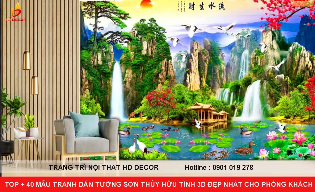 TOP + 40 MẪU TRANH DÁN TƯỜNG SƠN THỦY HỮU TÌNH 3D ĐẸP NHẤT PHÒNG KHÁCH