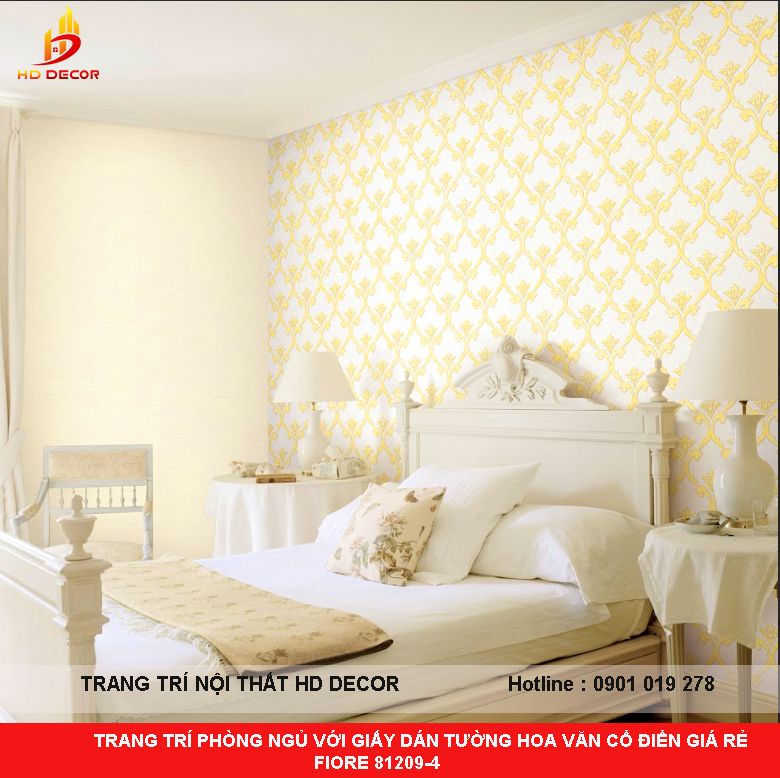 TRANG TRÍ PHÒNG NGỦ VỚI GIẤY DÁN TƯỜNG HOA VĂN CỔ ĐIỂN GIÁ RẺ FIORE 81209-4