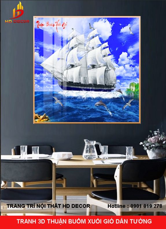 TRANH 3D THUẬN BUỒM XUÔI GIÓ DÁN TƯỜNG